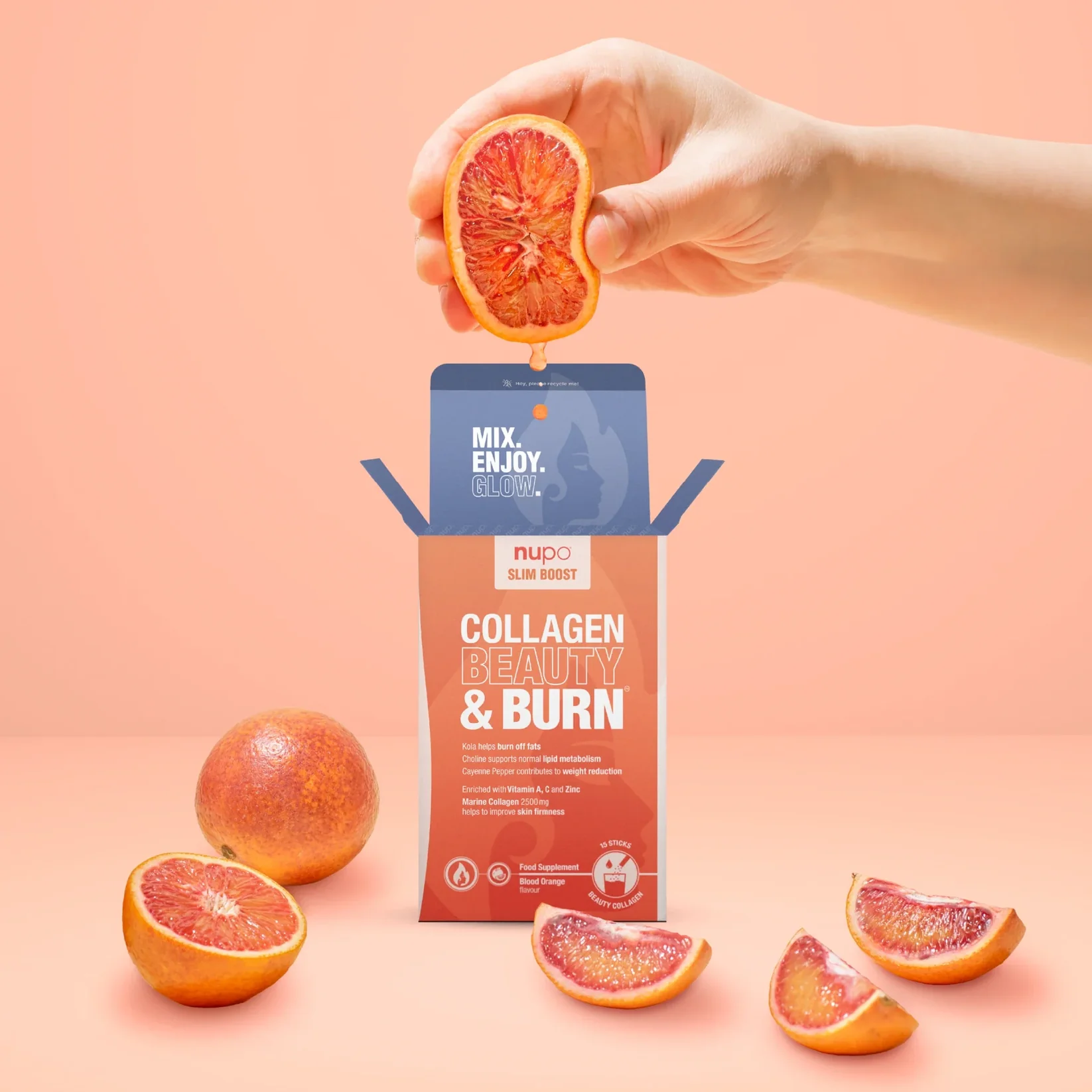 A fast-dissolving powder that mixes easily in water with a fresh blood orange flavour – perfect on the go!